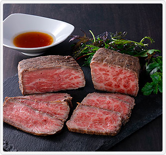 土佐の気候・風土が育んだ黒毛(くろげ)と褐毛(あかげ)の土佐和牛、美しい霜降りで味わい深い「黒毛和牛」と赤身がうまい和牛「土佐あかうし」を、室戸海洋深層水食塩と胡椒のみで調味して、食品添加物を使わずお肉そのものの自然なおいしさを味わえるとともに、高知独特の藁焼きで炙り燻したあとじっくりと低温加熱した芳醇な香り漂うローストビーフセットです。