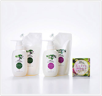 内容量(約):シャンプー・トリートメント各300ml、シャンプー詰替え用280ml、トリートメント詰替え用280ml、葛ソープ110g