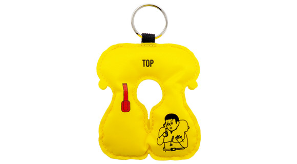 特徴的なイラストはそのままに、ランヤードと呼ばれるライフベストを膨らませる際に使用する